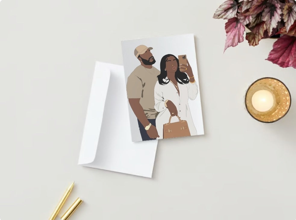 5x7 folded greeting card, with envelope and blank inside for your personal message.